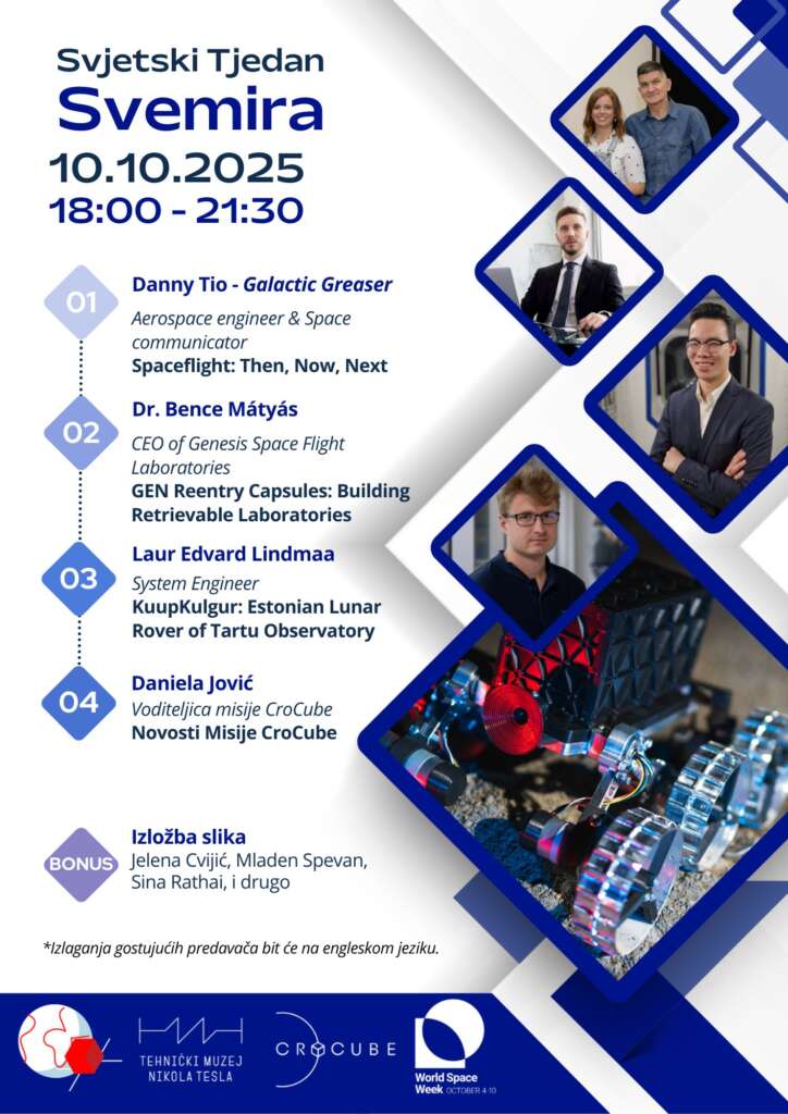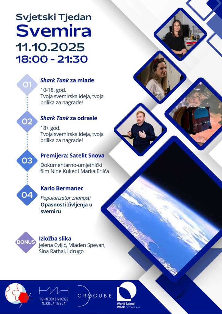 Ovog listopada Zagreb postaje središte svemirskih događanja. U suradnji s Tehničkim muzejom Nikola Tesla pripremili smo bogat program u sklopu Svjetskog tjedna svemira, namijenjen svim uzrastima – od učenika i studenata do stručnjaka i znatiželjnika.